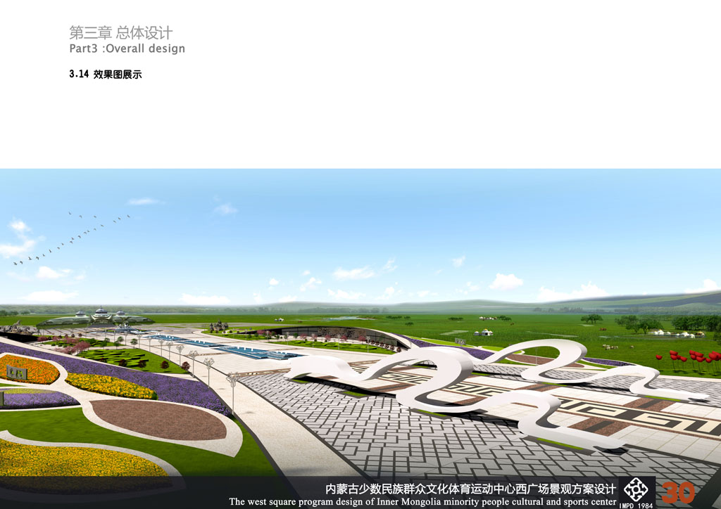 近日,內(nèi)蒙古少數(shù)民族群眾文化體育中心西廣場(chǎng)景觀方案設(shè)計(jì)公開競(jìng)賽結(jié)果揭曉。我院風(fēng)景園林所與市政二所共同設(shè)計(jì)的作品《馬背之魂》榮獲第三名。