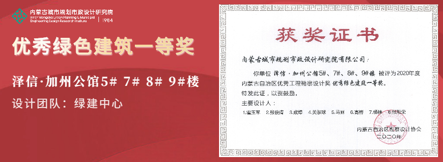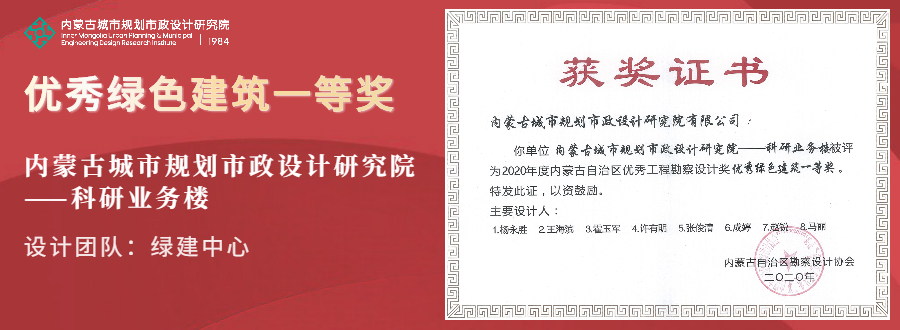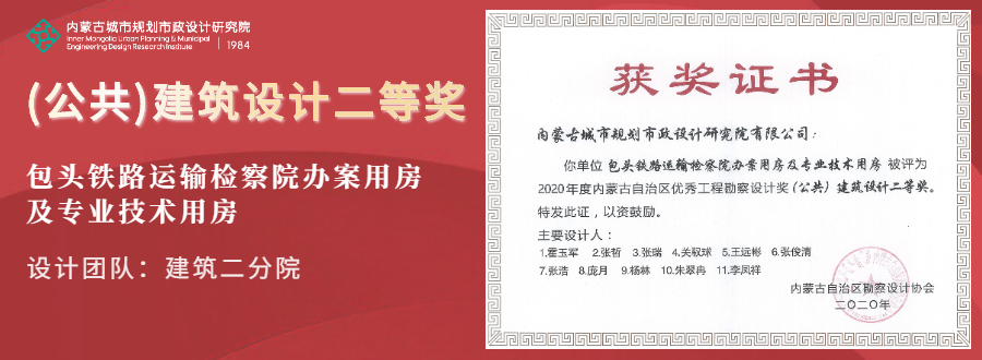 近日,內(nèi)蒙古自治區(qū)勘察設(shè)計協(xié)會公布了2020年度自治區(qū)優(yōu)秀工程勘察設(shè)計獎獲獎名單,我院設(shè)計作品在眾多項目中脫穎而出,一舉攬獲優(yōu)秀綠色建筑,公共建筑設(shè)計,優(yōu)秀市政、交通公用工程共3個組別的6個獎項。其中,在“優(yōu)秀建筑電氣、綠色建筑、水系統(tǒng)、智能化”組別中僅產(chǎn)生3個一等獎,我院占有2個席位。