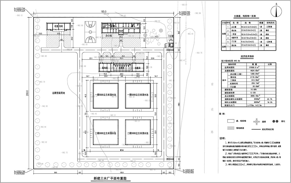 新建三水廠供水能力近期(2020年)1.0萬m3/d,遠期(2030年)3.0萬m3/d。
