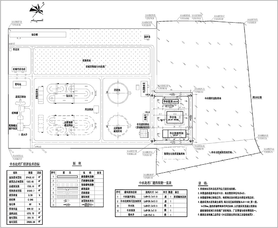 中水處理構(gòu)筑物及附屬建筑構(gòu)筑物:規(guī)模近期為1.5萬m3/d,遠期為3.0萬m3/d。